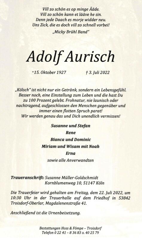 Die Trauerfeier wird gehalten am Freitag, dem 22. Juli 2022,
