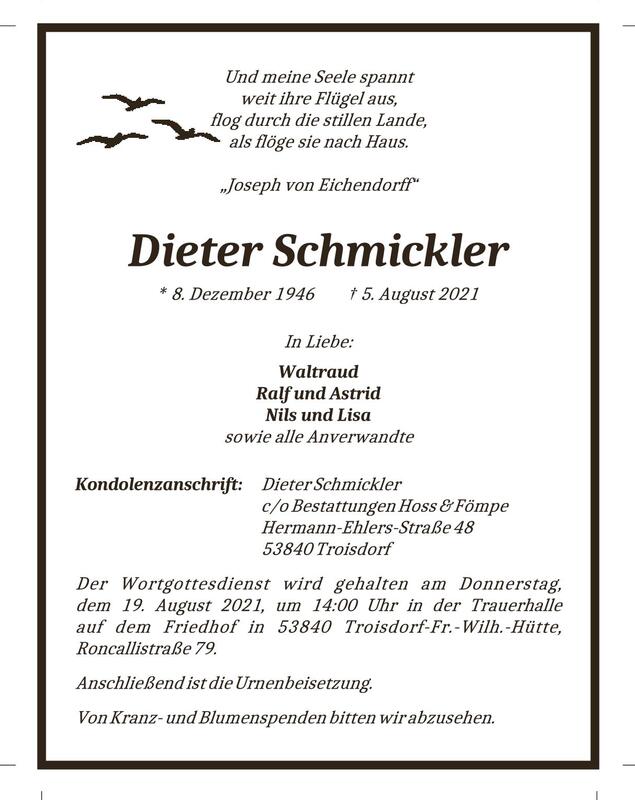 dem 19. August 2021, um 14:00 Uhr in der Trauerhalle