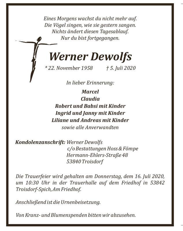 10:30 Uhr in der Trauerhalle auf dem Friedhof in Troisdorf-Spich, Am Friedhof.